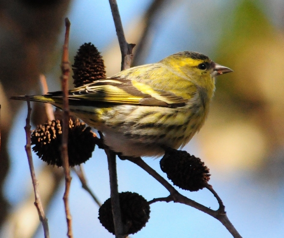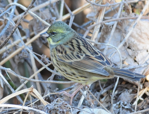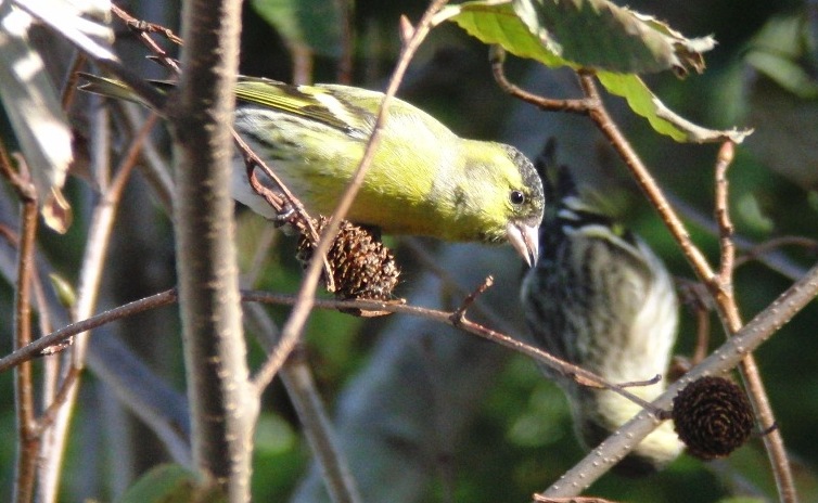 | (感想) 風もない晴天に恵まれ、1月も早や5日となった平日の公園は、いつもどおり散歩の人がちらほら居るだけの静かな環境からスタートした。大羽谷津へ歩を進めると、例年通りアオジが沢山姿を見せてくれた。 中程まで行くと榛(ハン)の木にお目当てのマヒワが7,8羽食事をしているのに出会う。「逆立ちて実を啄ばみし鶸のむれ」崖上の道路からじっくりと観察することが出来て皆満足。 もう少し行くと今度はベニマシコが3・4羽姿を見せてくれ、上空ではオオタカも見ることが出来ました。歩きながら皆で蛇沼までのこの遊歩道がいつまでもこのままでいてくれることを願い、27種のバードウォッチングを終えました。 |