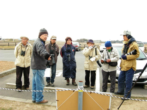 会長からは昨年発行した「龍ヶ崎の野鳥をしらべる」報告書、図鑑の作成のお話や、今年の抱負、行事予定の話があり、今年も健康に気をつけ楽しい探鳥会にしようと挨拶がありました。山根さんからは、鳥インフルエンザについての話があり、死んでいる水鳥などの扱いについての話がありました。