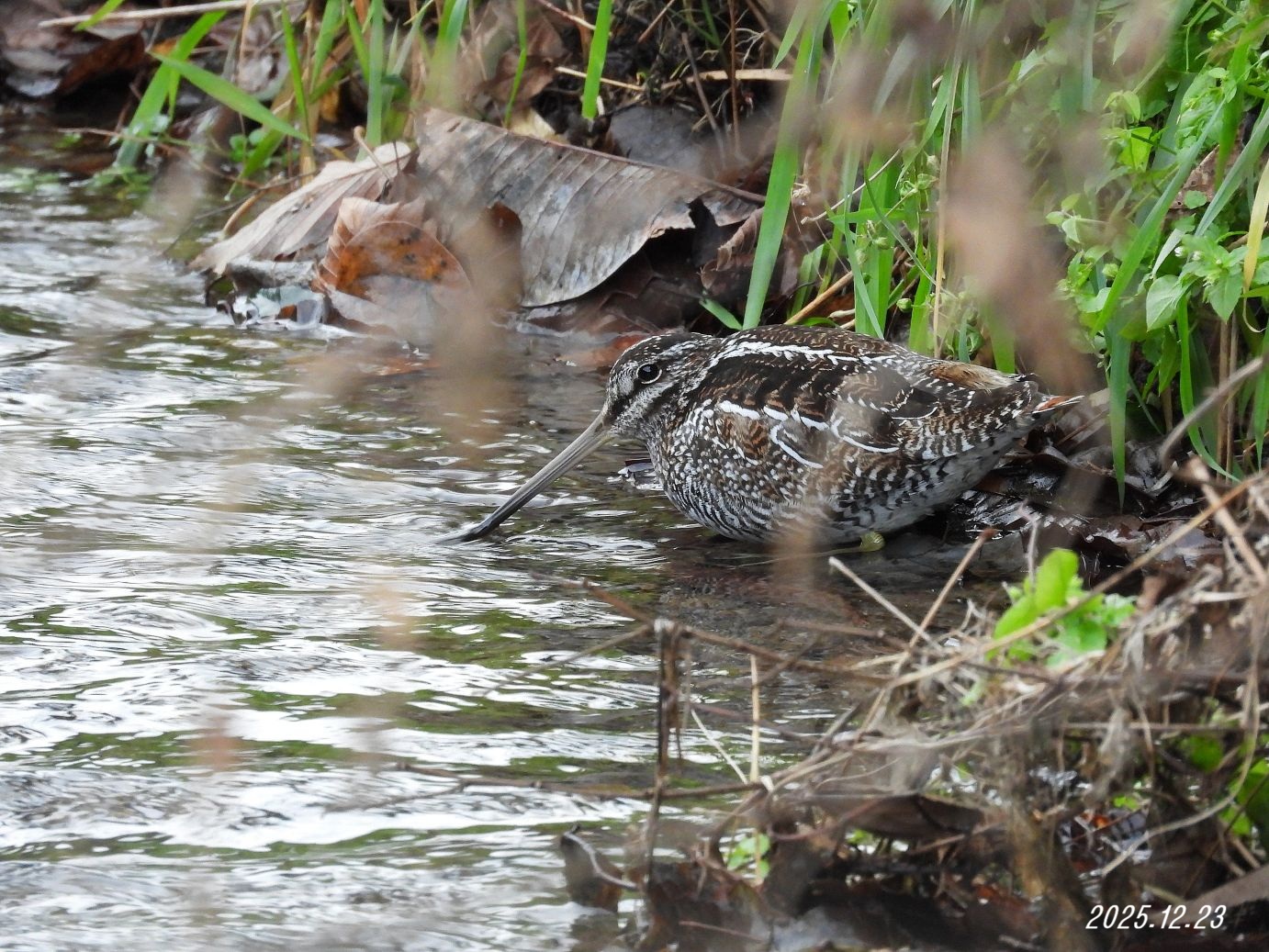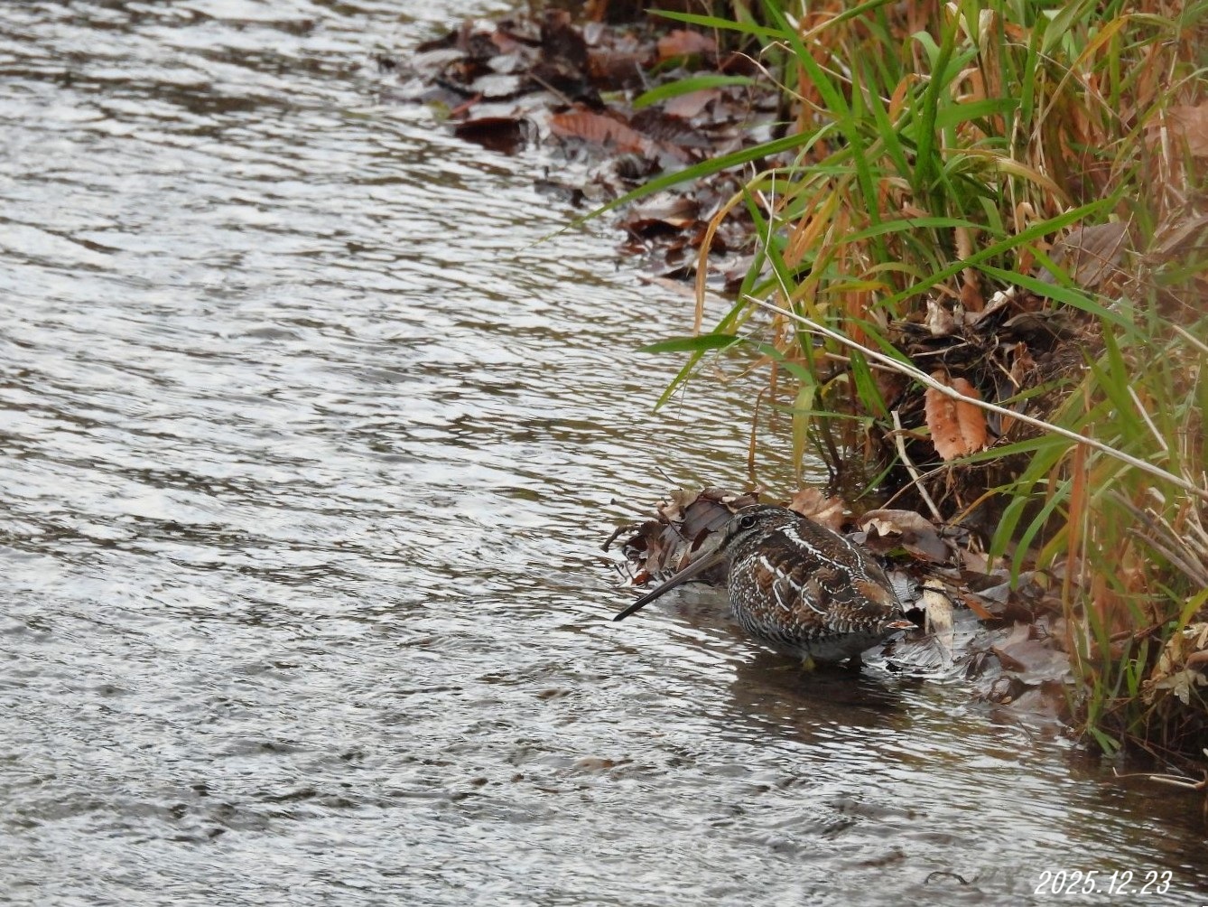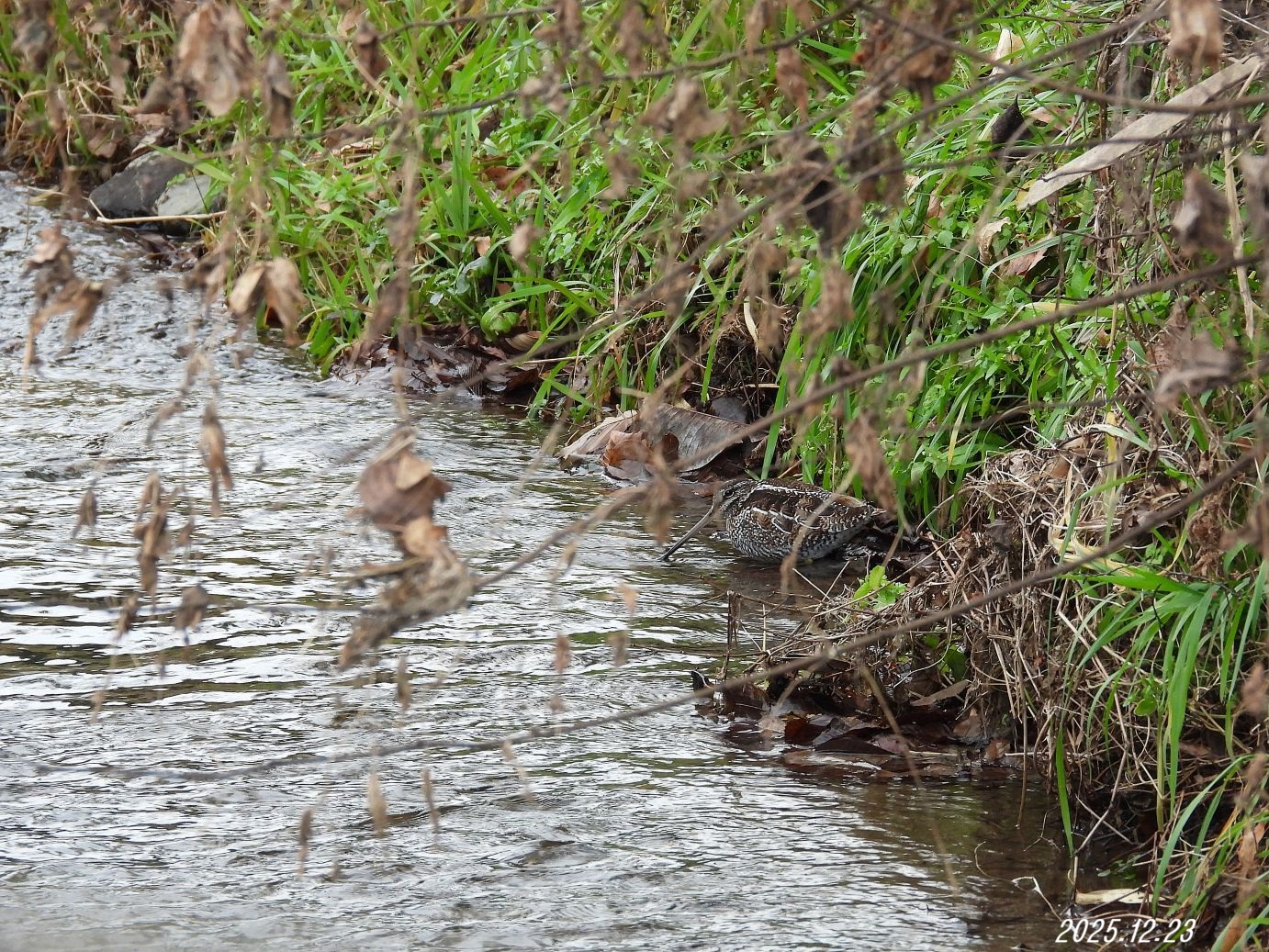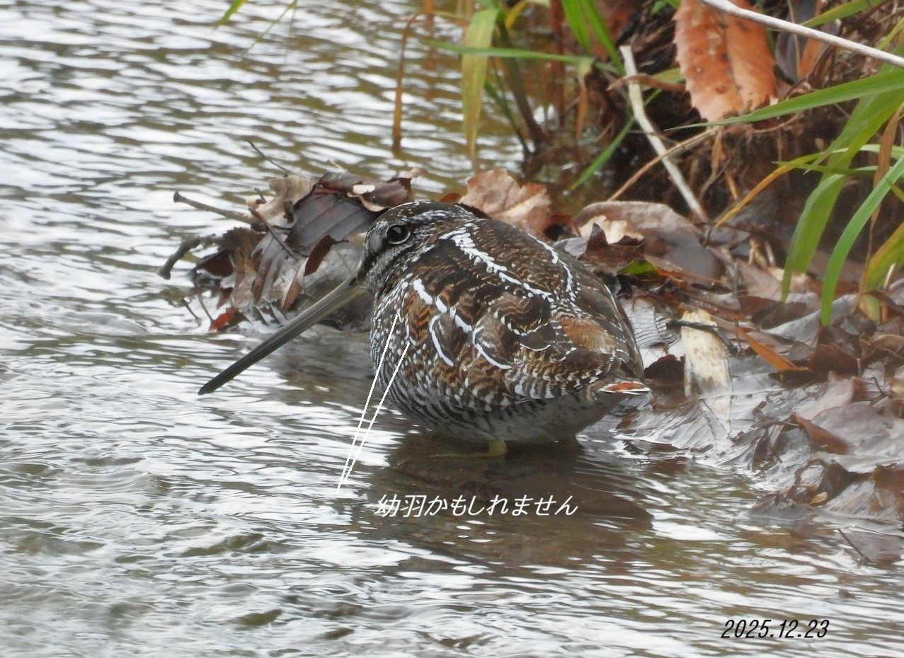アオシギの観察、今季4個体目。 2025.年12月23日 茨城県央標高50m 岸久司 rbwcトップへ戻る 標高の低い沢でしたが運よく双眼鏡に入ってくれました。 環境は水深は浅く、堀は深くて林縁を流れる沢の好条件かとお゛もいます。 肩羽の一部が淡いのは幼羽かと思われるので、幼鳥の可能性がありそうです。